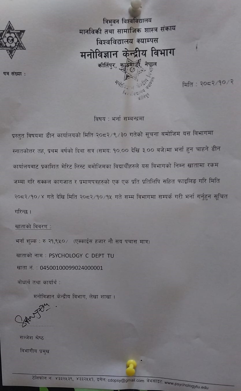 स्नातकोत्तर (MA) तह चौथौं सेमेस्टरको सत्रान्त परीक्षाका निमित्त अनलाइन फाराम भर्ने तथा परीक्षा तालिका सम्बन्धी जरुरी सूचना ।