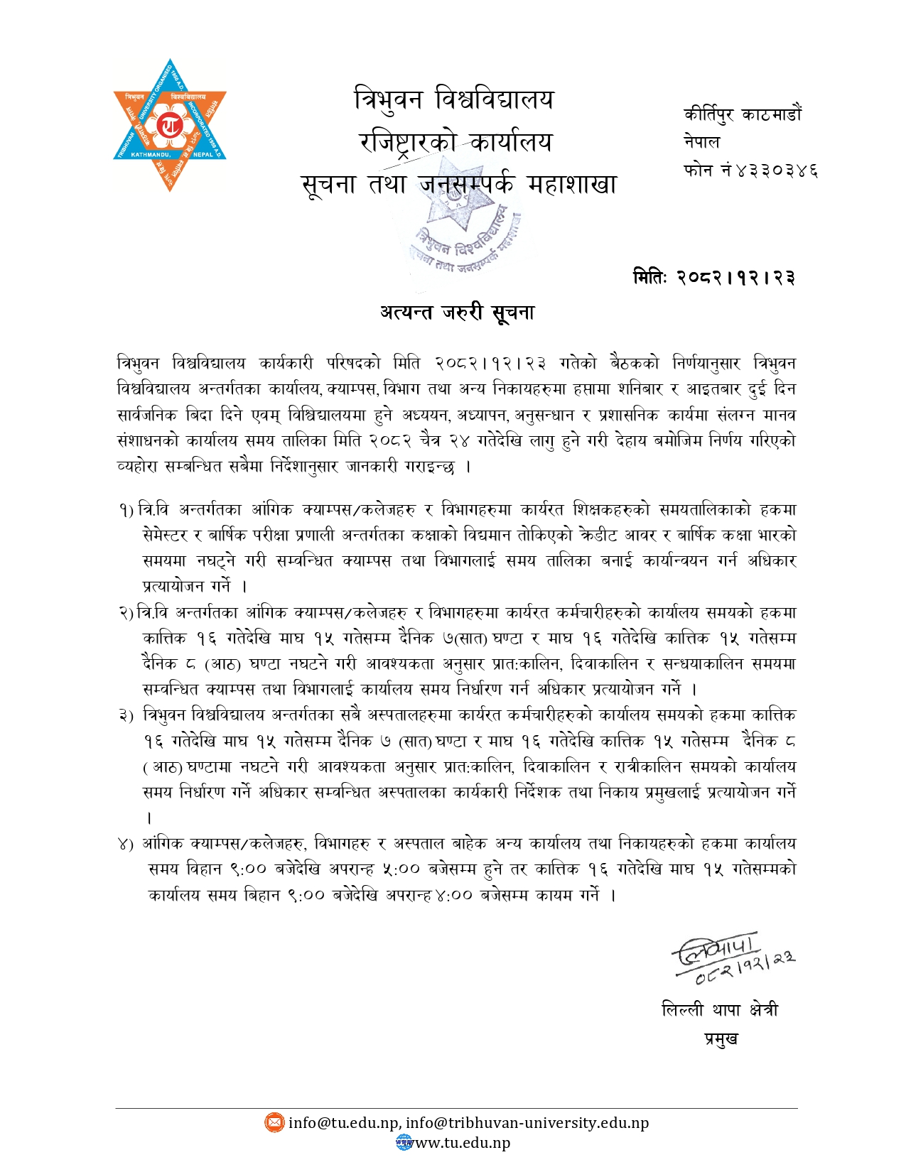 दर्शनाचार्य-विद्यावारिधि (MPhil-PhD) दाेस्रो सेमेस्टरको सत्रान्त परीक्षाको संशोधित परीक्षाा तालिका सम्बन्धी जरुरी सूचना ।